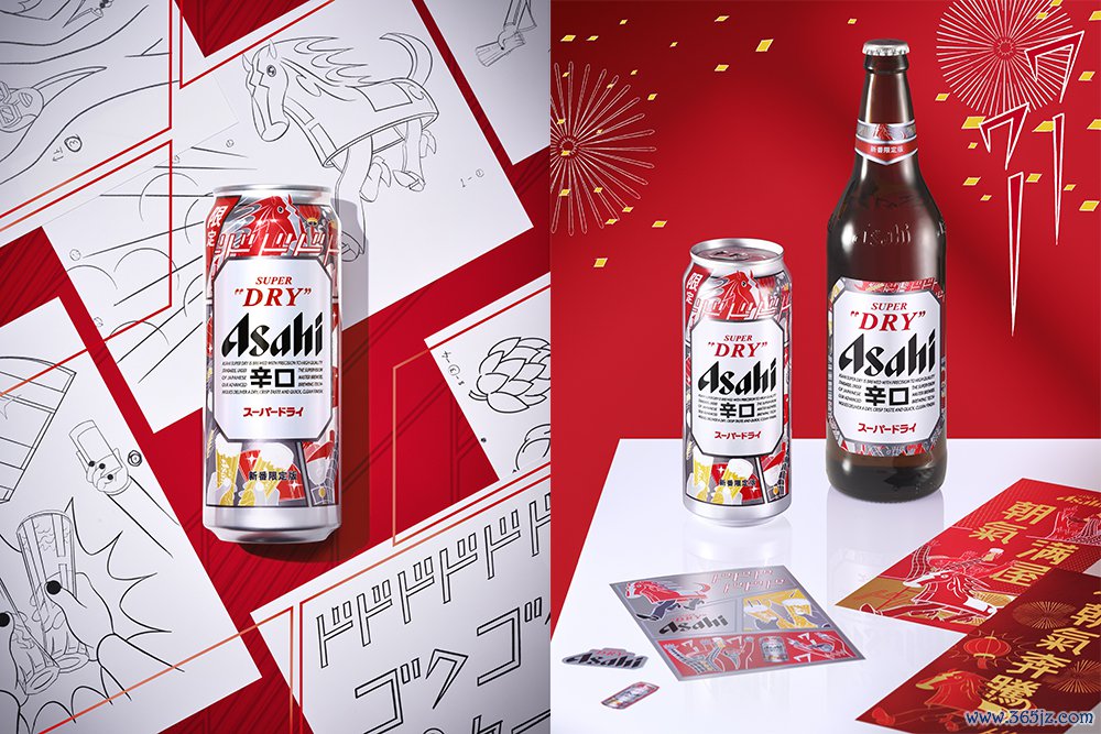 图:寰球销量第一的日本啤酒品牌朝晖超爽啤酒联袂现代日本艺术家横山裕一跨界配合,推出新春截止包装